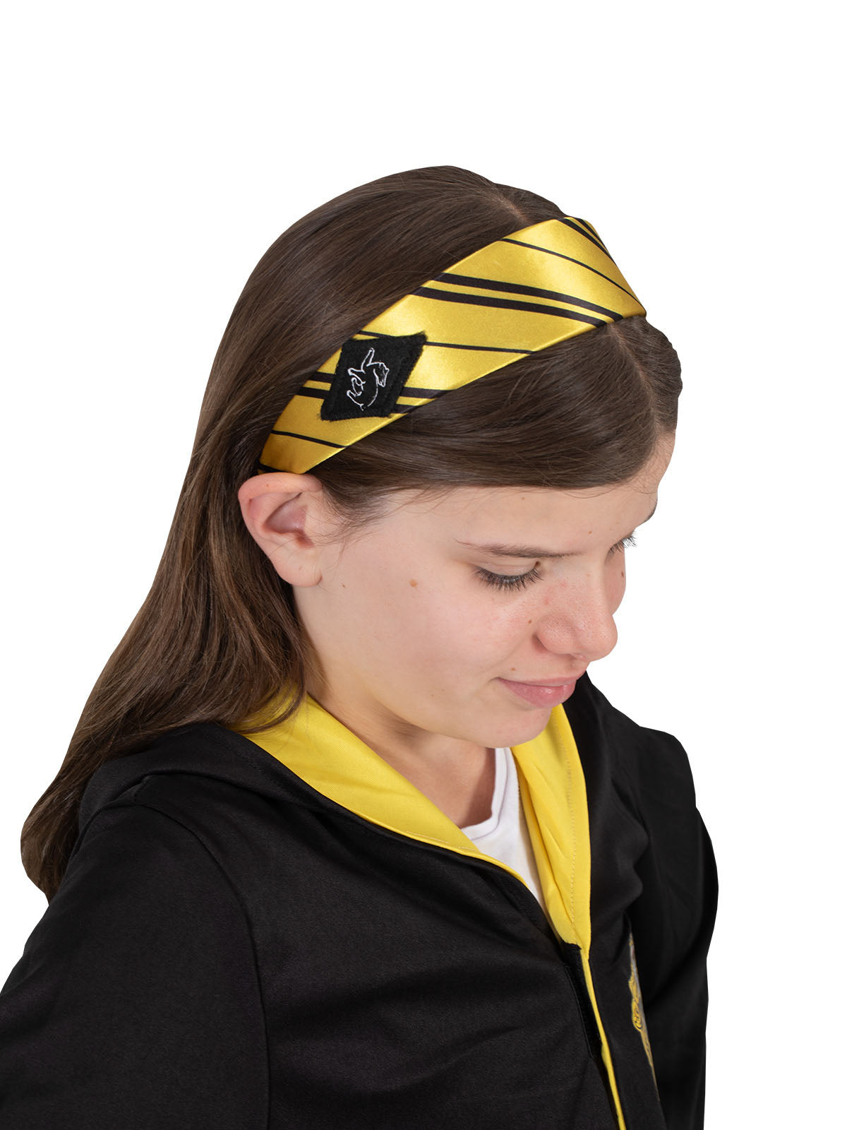 - Headband covered in silk fabric in iconic Hufflepuff colours with digitally printed stripes