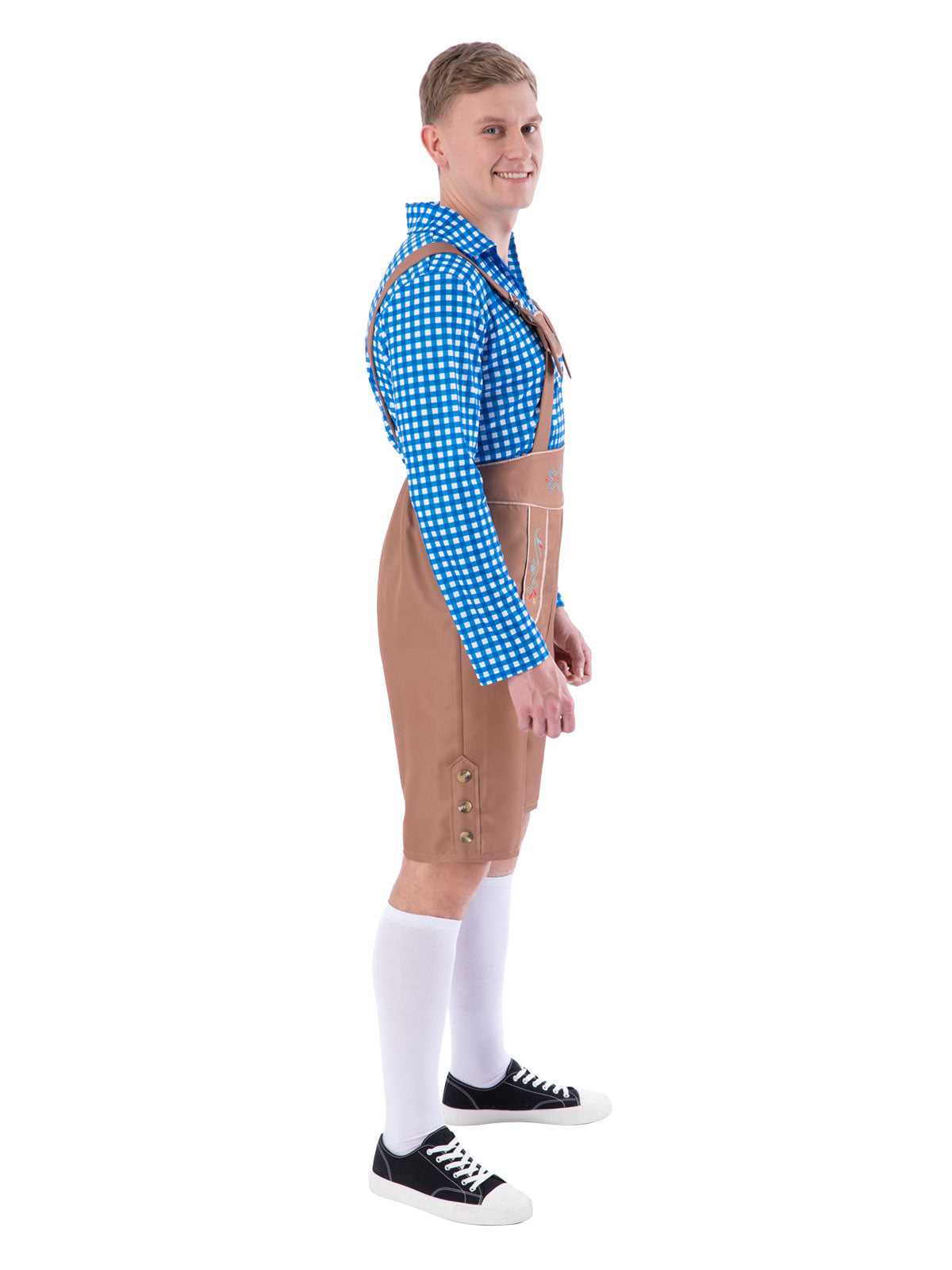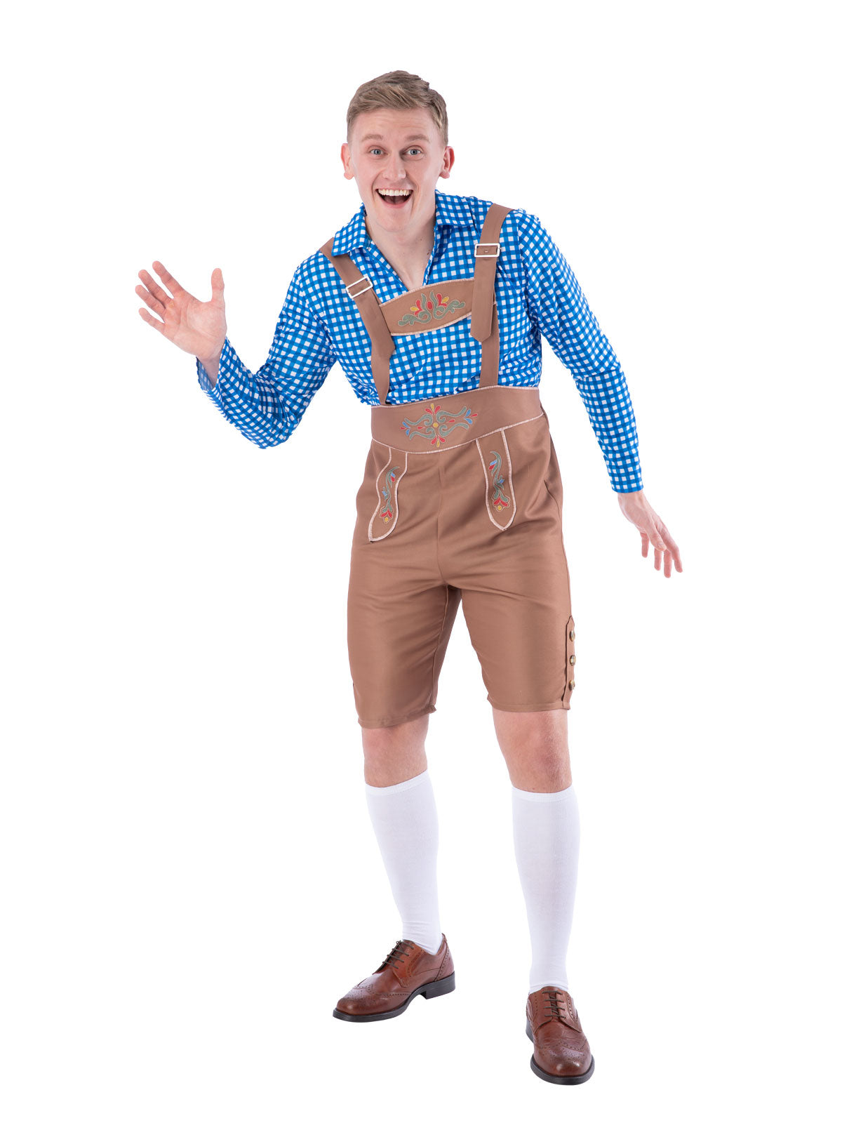 Perfect for any party celebration, especially Oktoberfest, this Beer Man Lederhosen costume will have you dancing a jig and justling a stein in no time. Dress to impress this Oktoberfest with our wide array of costumes.