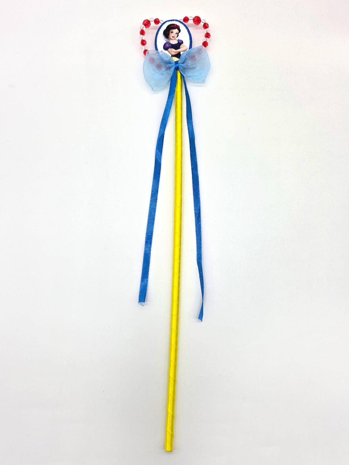 - Wand is on a plastic stick covered with ribbon and has a tulle bow attached