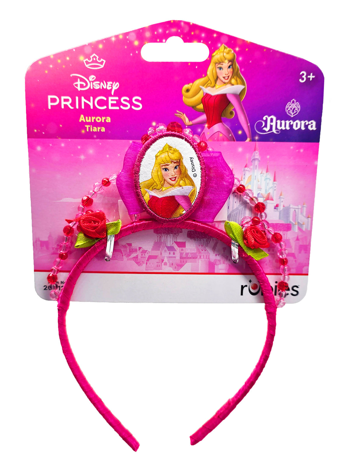 - Aurora character tiara in shades of pink and yellow