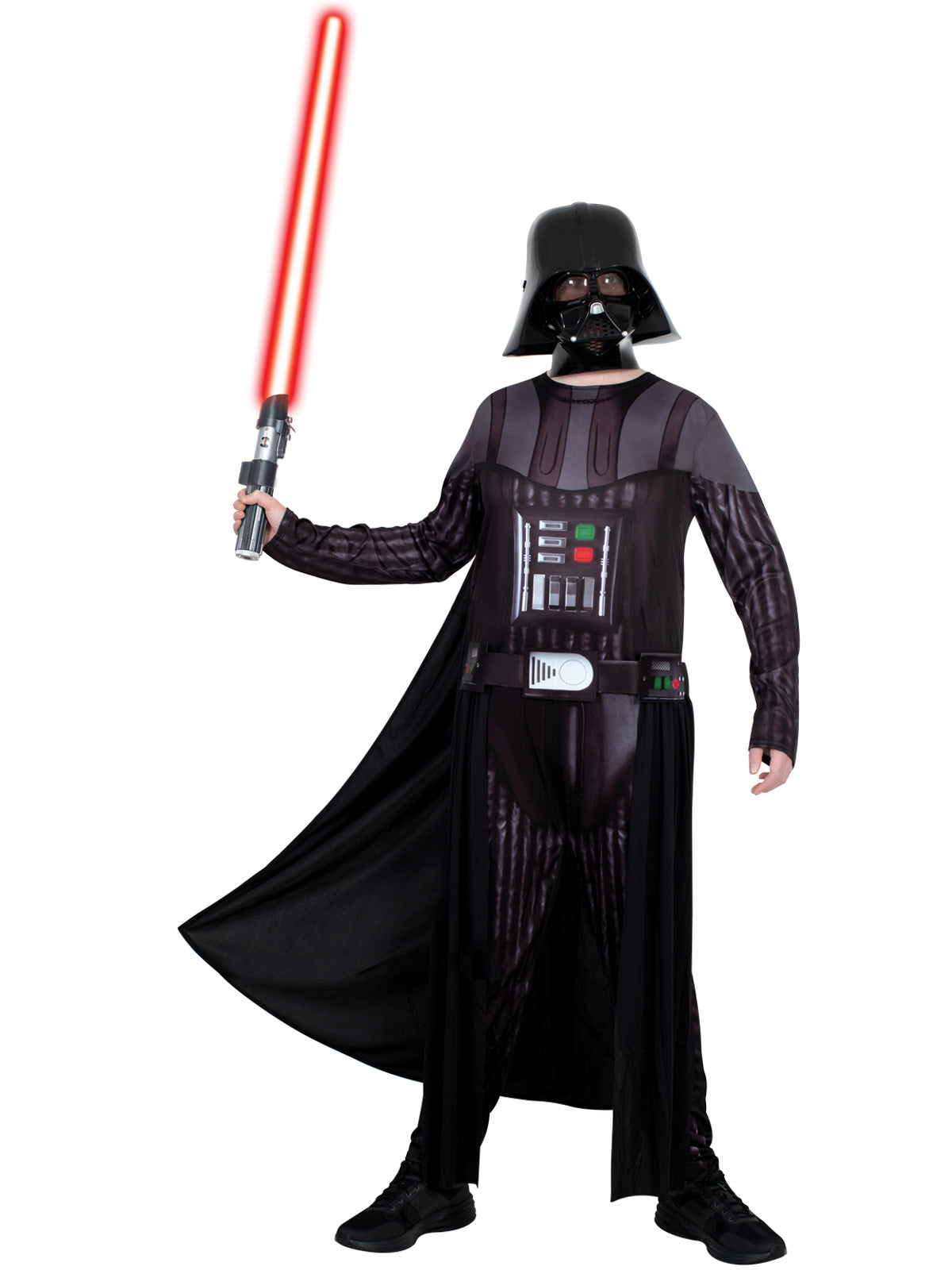 Ultimate villain of the original trilogy, Darth Vader was born Anakin Skywalker, a Jedi lured to the dark side by Palpatine. This iconic Lucas Film and Disney anti-hero of the Star Wars series, Darth is father to Luke and Leia and characterised by his black robes, cape, helmet and breathing device. Become the reigning Sith Lord of the Galactic Empire today - and may the force be with you.