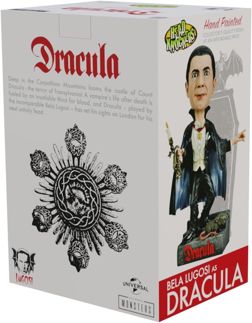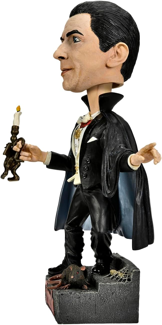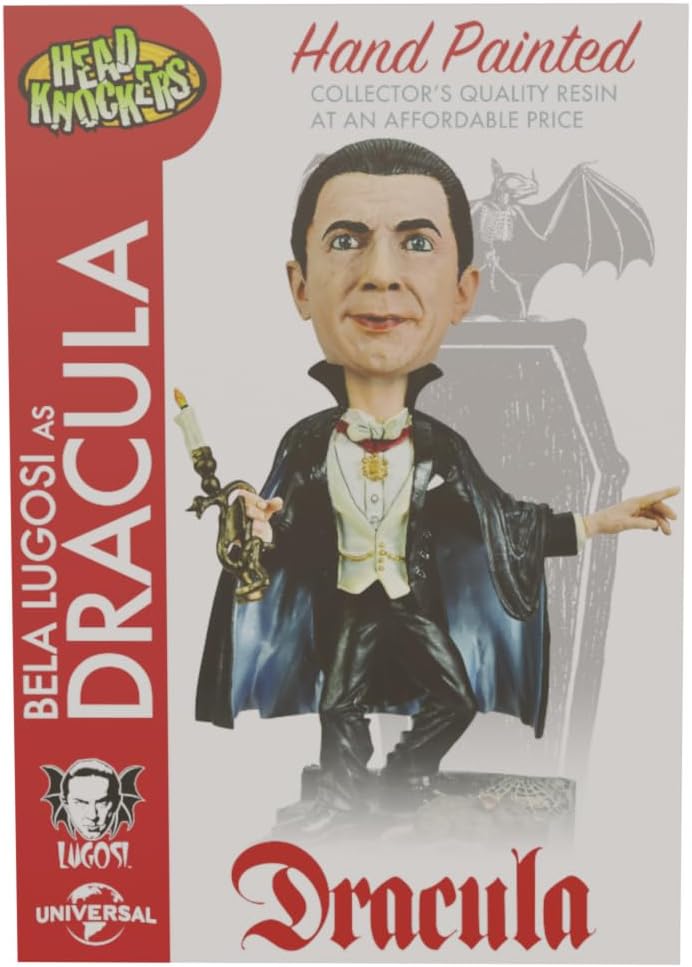 - One bobble head/head knocker figure of Dracula standing 8” tall