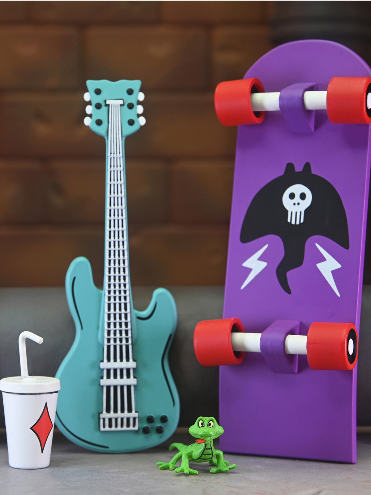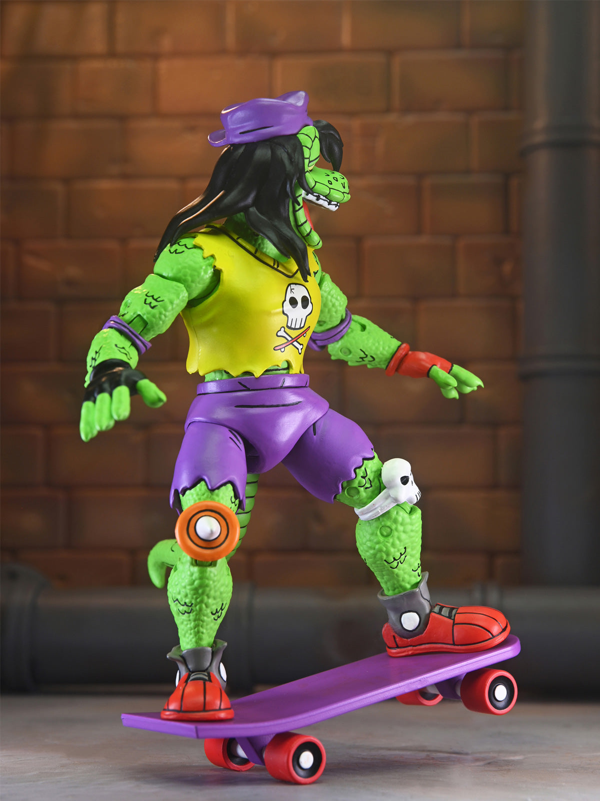 It’s the definitive Mondo Gecko for your TMNT collection! This action figure is straight from the pages of Eastman and Laird’s Teenage Mutant Ninja Turtles Adventures comic book series from Archie Comics. Mondo Gecko has left the music biz to join the Turtles in their pursuit to do good!