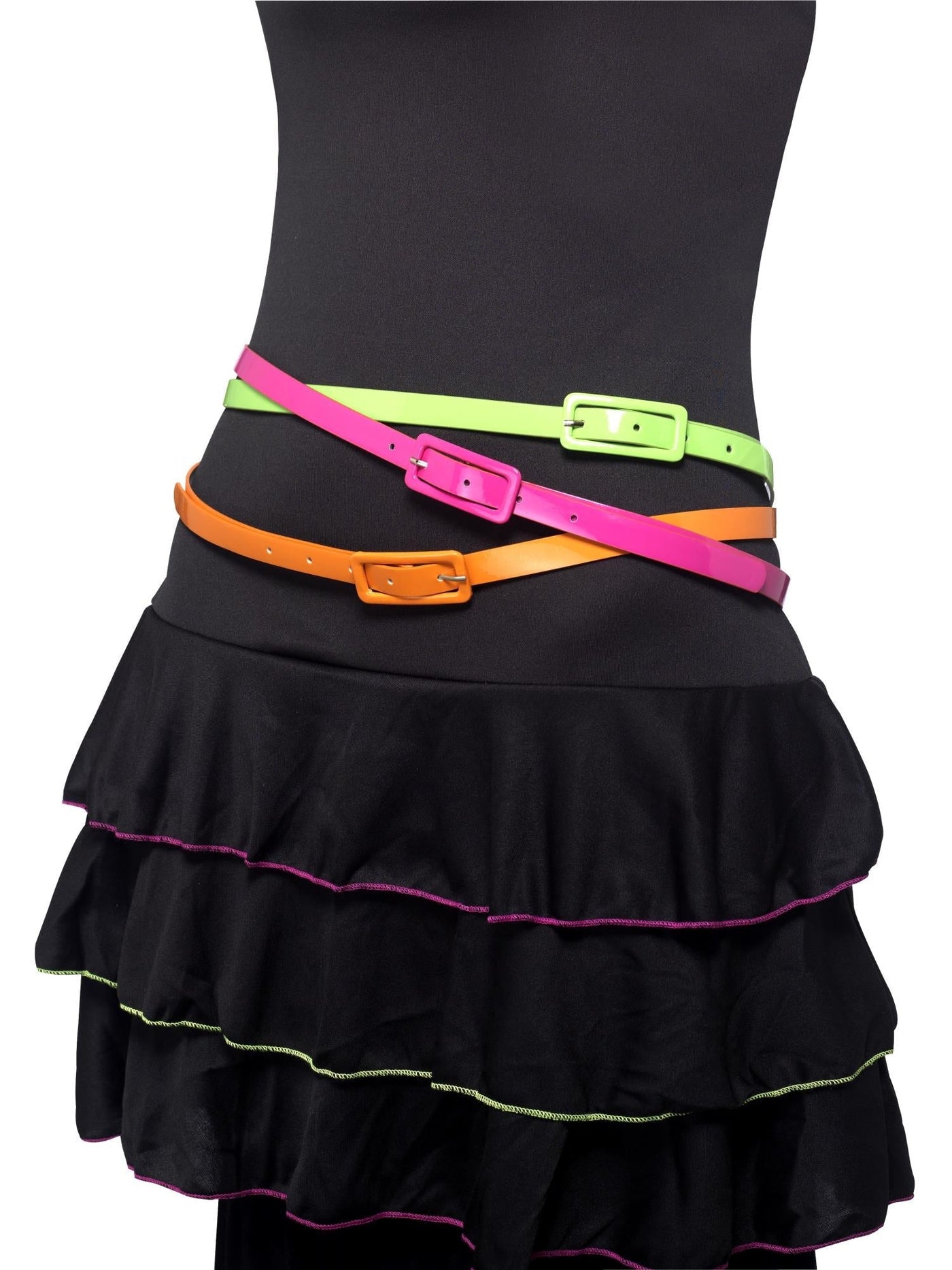 Complete your 80s look with the Neon Belts. This pack contains three different coloured belts.