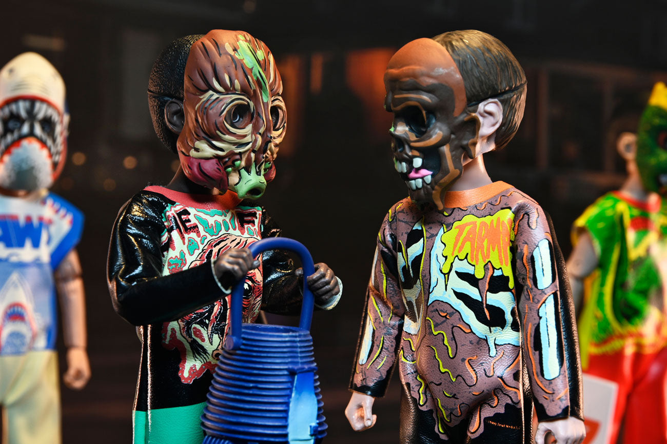Halloween continues at NECA with the next series in the Ben Cooper Costume Kids Collection. Series 7 features all-new trick-or-treaters based on the licensed kids’ costumes from two of the largest Halloween costume manufacturers from the 1950s through the ’80s. This new five-figure lineup includes classic Ben Cooper and Collegeville costumes along with NECA’s own designs in the style of those costumes as if they were produced today. Standing approximately 6 inches tall, these fully poseable figures include 50th Anniversary Jaws, Return of the Living Dead’s Tarman, Planet of the Apes’ Warrior, The Fly, and Godzilla. Collect the whole range!