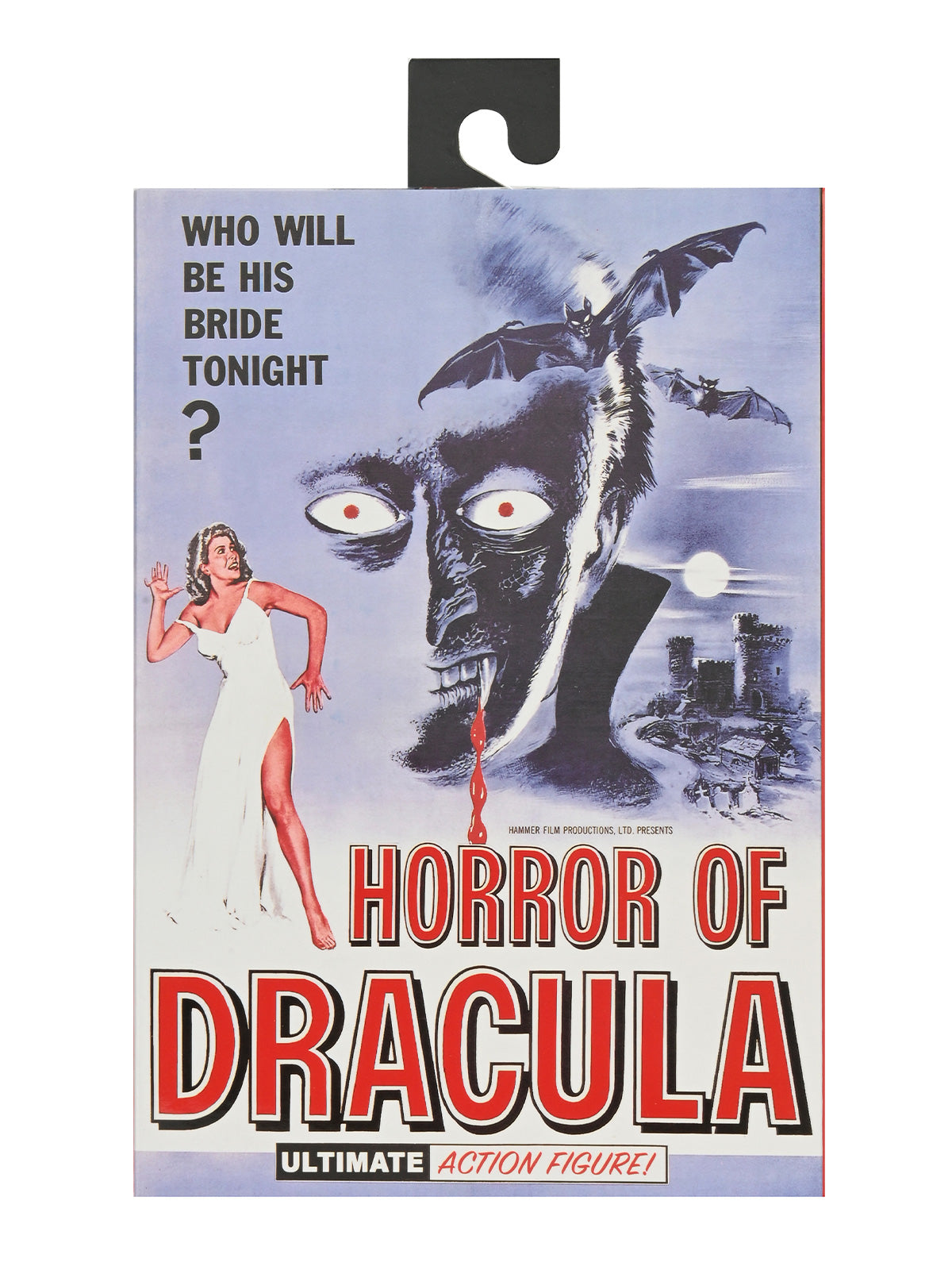 NECA presents the first in a series of action figures from the legendary Hammer House of Horror! Hammer has produced landmark horror since the 1950s, with one of its most famous being Horror of Dracula. The film captured audiences with its mix of vivid color, carnality, and violence, and Christopher Lee’s portrayal of Dracula is considered a benchmark against which other depictions are measured.